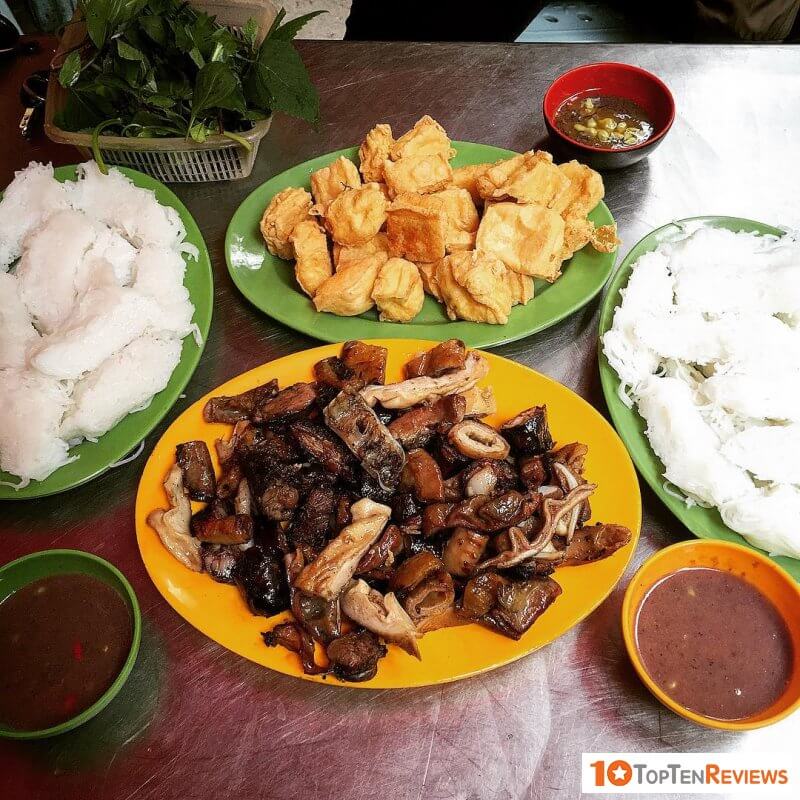 Unlike other Bun dau mam tom restaurants in Hanoi, this makes the customers fall in love thanks to the delicious taste of pig's tripes grilled on charcoal. The smell of grilled intestines is full of the street, and the food is prepared right in front of the guests. The outdoor kitchen is super convenient, and the smell of heart is attractive. Therefore, it is also one of the delicious vermicelli with shrimp paste places in Hanoi.
