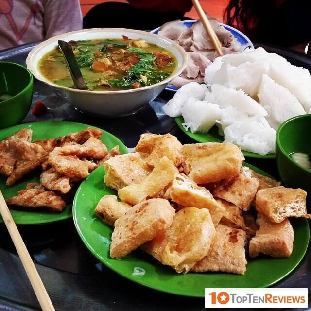 The noodle is delicious, fresh, and the fried tofu are golden, crispy, and fleshy. Fresh spring rolls, pork trotters are sweet. A full and delicious dish costs about 35.000 VND - 40.000 VND (1,52$ - 1,74$).