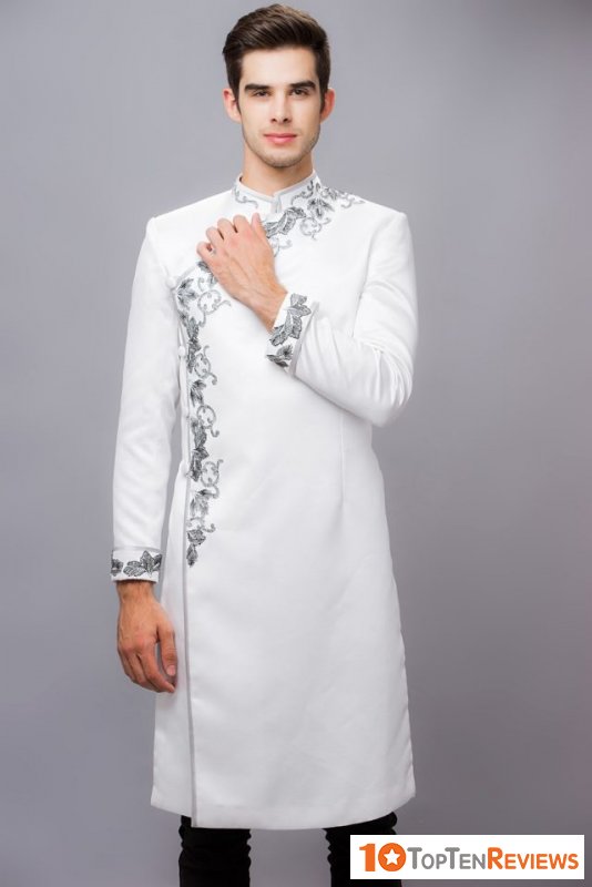 The innovative white Ao Dai with embroidered flower motifs is not cheesy but gives you a masculine look that is equally gentle. The shirt is covered with a pattern on one side, a plain white flap, and embroidered flowers on the chest make the design more prominent and elegant.