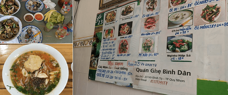 Thuy Kieu is so famous that ask where to eat delicious snails in Quy Nhon, and everyone will point you here. Although the area is a bit small, the freshness of the snails and the diverse processing methods blend with the typical heirloom dipping sauce make the restaurant always busy with customers. In addition to snails, they also have all kinds of clams, scallops, oysters, Xia, ... and especially the must-try dish when coming here is the super-delicious clams with a fairly affordable price, only a few tens of thousands of you already have one. The plate is full and smells so good. Absolutely do not miss this address when traveling to Quy Nhon!