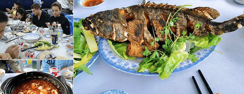 Being placed on a floating boat in the middle of the lagoon, bringing a poetic space, fully enjoying the cool sea breezes and staff wearing extremely polite white pants - white shirts, Hoa Hoa restaurant is one of the delicious seafood restaurants in Quy Nhon that you must try. But, of course, it is not only known for its unique design, but the food here is also extremely delicious and diverse, especially the dishes about grouper and jellyfish.
