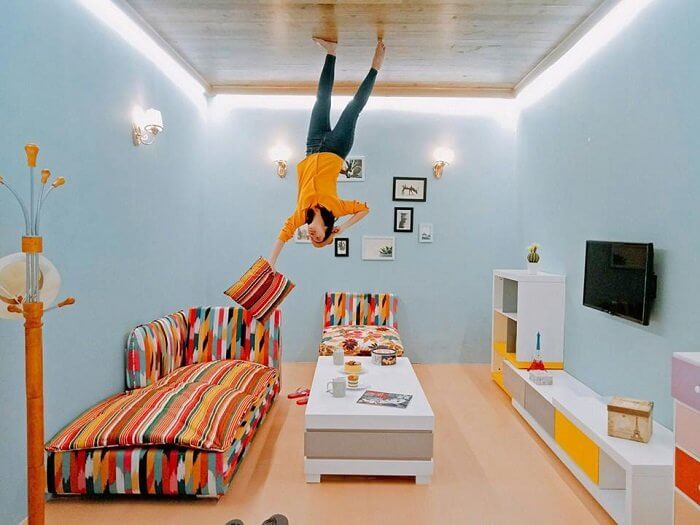 This house is a new entertainment address officially opened for tourists to visit in early 2018. The name "reverse house" has made many people, especially young people, curious about objects' layouts. One thing that is remarkable and thrilling when entering this house is that you will not distinguish which is the ceiling and the floor, so be careful not to get objects in the place falling on your head.