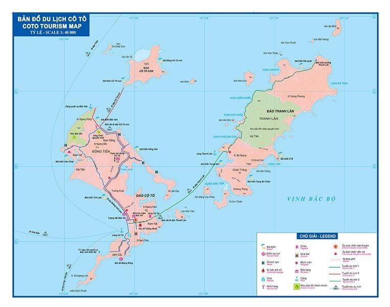 - Route 3: Co To Town – Thanh Lan Island: Co To Town – Thanh Lan Island – Ba Chau Beach – Mai Cong Dam Jellyfish Processing Facility