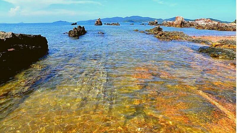 From Hong Van beach, you go straight to the right; near the end, you will meet Vung Tien beach. Vung Tien Beach has rocky strips lying on the sand running to the sea, looking like small dragons winding. Here, you will see the sand and rocks under the water under the clear water.