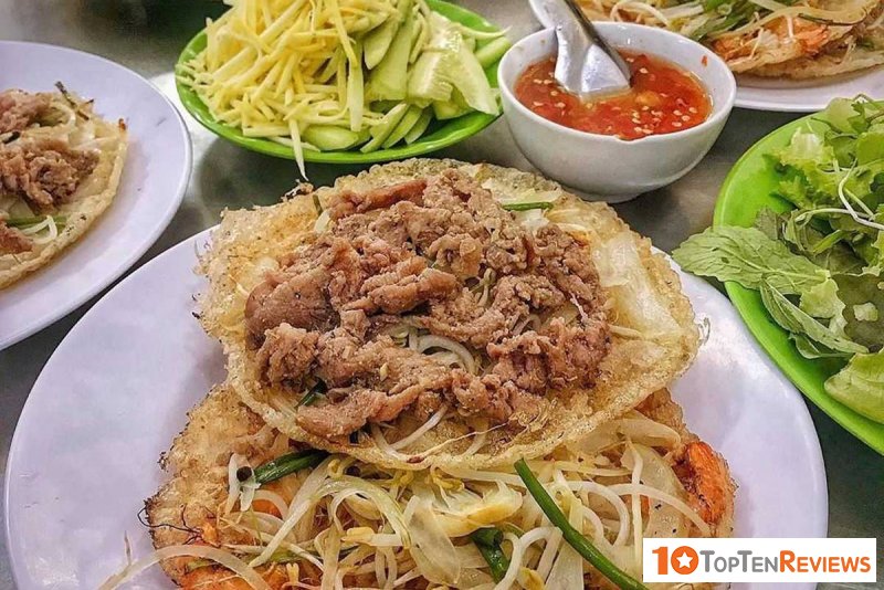 Quy Nhon a surprisingly good city to eat. The local seafood along the beach are cheap and delicious. And some of the local specialties are also worth seeing. There are numerous small seafood restaurants along the beach north of the large statue of Ho Chi Minh with his father.