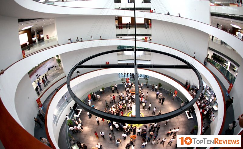 The 3-storey building follows a unique beveled square block. Around the museum, the campus is an ample, airy space with many trees, an artificial lake with air-conditioning.