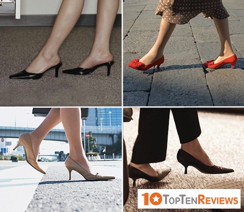 Kitten Heels shoes have a relatively low sole design with a pointed toe that brings a feminine look and helps her move quickly. This is a good suggestion for girls who travel a lot by motorbike to go to work.