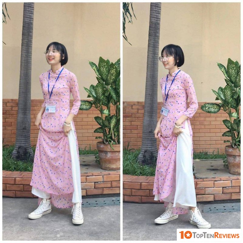 With the standard set of traditional Ao Dai, choosing mixed sports shoes may lose its inherent beauty and value. But with the innovative short-sleeved shirt, it is entirely possible. With this way of mixing clothes with sports shoes, you will have an Ao Dai outfit that is both personal and still equally polite and charming.