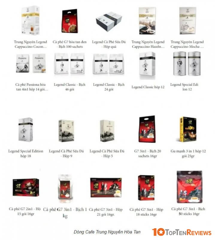 Above are the products of Trung Nguyen Coffee Group. Products are sold at supermarkets, shopping centers markets and sent to Trung Nguyen's sales channels. Trung Nguyen's products are widely advertised and announced on the media.