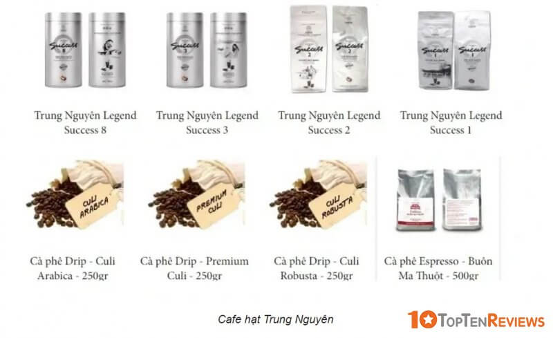 Trung Nguyen has many delicious nuts such as Success 8, espresso seeds, Success 3. The middle category is the remaining products.